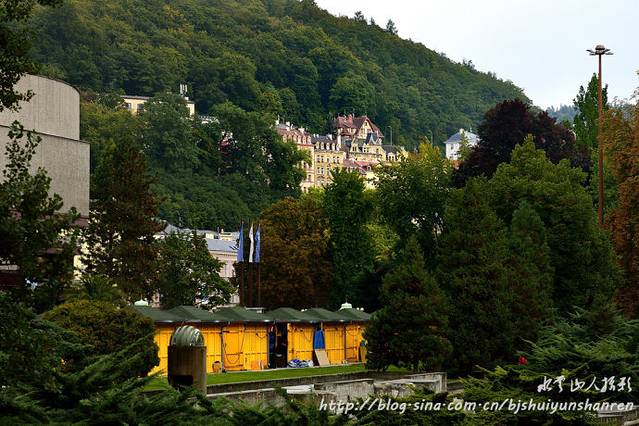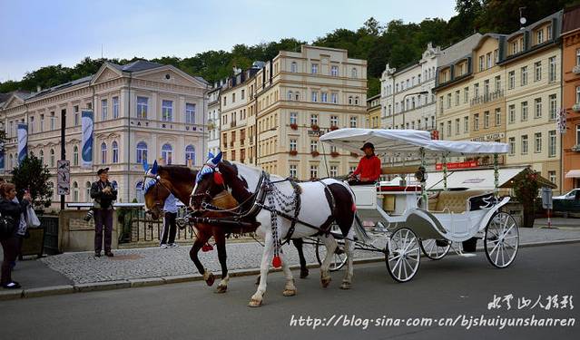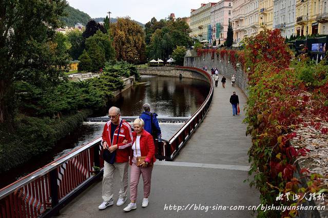 网上信息:卡罗维瓦利是欧洲历史上最悠久的温泉小镇,这里既是疗养胜地,也是风景区。城内巴洛克式建筑、温泉长廊及优美山谷景色,数不胜数。泰普拉(Tepla)河穿城而过,街道沿河兴建,两旁建筑古色古香,洋溢着维多利亚时代风格。优美的山谷景色与华丽的建筑群,形成一幅幅美丽动人的画卷。市内每股泉水都有长廊,长廊内有水龙头,沿着泰培拉河两岸的人行步道行走,边走边喝,既可浏览两岸独特的建筑风格,还能品味各种温泉水。