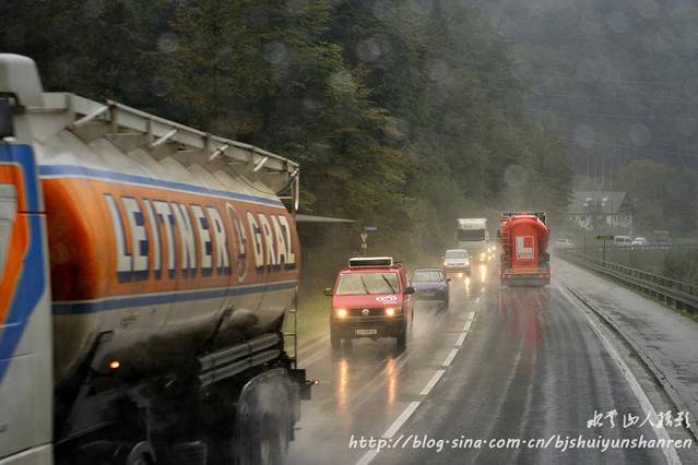 13:35我们离开哈尔施塔特,上车奔向奥地利首都维也纳。沿途由西向东,逐渐驶离山区,时雨时晴者4、5次。