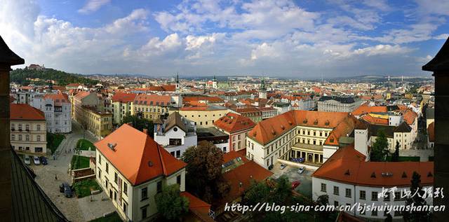 9点出发前往捷克第二大城布尔诺。布尔诺最繁华的街道是从站前向北延伸的马萨里克大街。街道两侧餐馆、自助餐厅、烟店、书店和衣料店等店铺林立。沿着商业区往前走,不久即到一个大的广场,即自由广场。以此广场为中心,北侧是圣雅各布教堂,南面为绿色广场和圣彼得和圣保罗教堂,西面矗立着什皮尔贝尔克城堡。广场对面建有哥特式的银行,16世纪后半期的文艺复兴式建筑的民俗博物馆等,让人感受到中世纪的气氛。