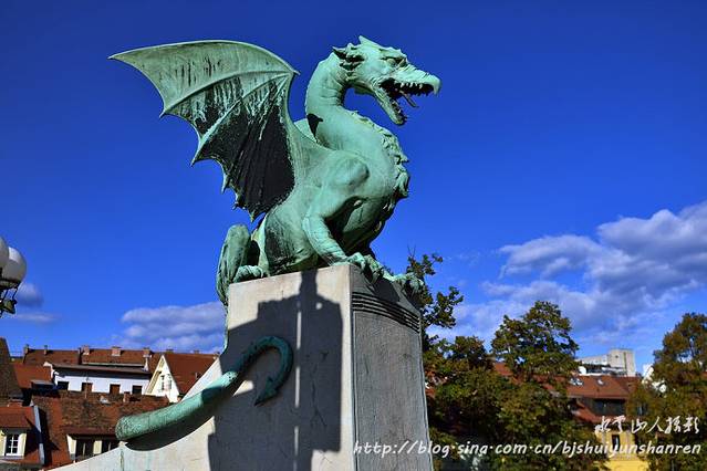从老城堡下来后,游览卢布尔雅那的标志建筑龙桥,两端桥头装饰有4个青铜翼龙。