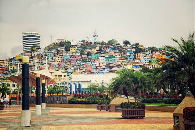 预订了下午两点去秘鲁的大巴车(是需要搭乘将近20个小时的过境夜车),于是早上就在周边逛逛,瓜亚基尔比较有名的就是Malecon 2000 河滨休闲区和 Las Penas灯塔山,出了一身的汗,还没完成从高原气候到海滨湿热天气的适应过程,还是各种不舒服。