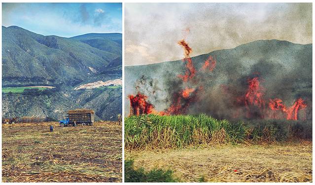 回城路上 距离铁轨十几米的甘蔗田着火了