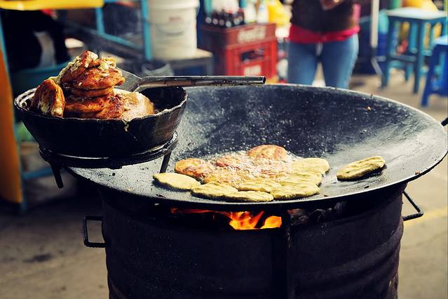 看时间差不多了,想着走下山去镇子中心的食物集市(其实就是菜市场),但泥泞不堪的土路让我犯了愁,这时身边停下一部皮卡,司机是个大大大帅哥(虽然穿得很普通),对我比划着大概意思是可以送我去 Mercado(market),想着“何乐而不为而且光天化日之下也不怕你把我卖了”,于是接受了好意,几分钟的路程虽然语言不通,但也交流了名字和我来自中国这类信息,下车时想给他车费,他直摇手说不要,我也尴尬,开玩笑说了句“amigo?”,他笑开了直点头。