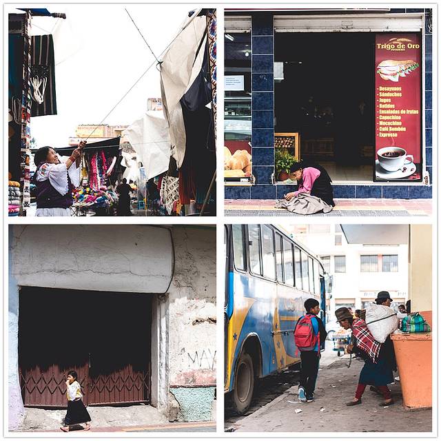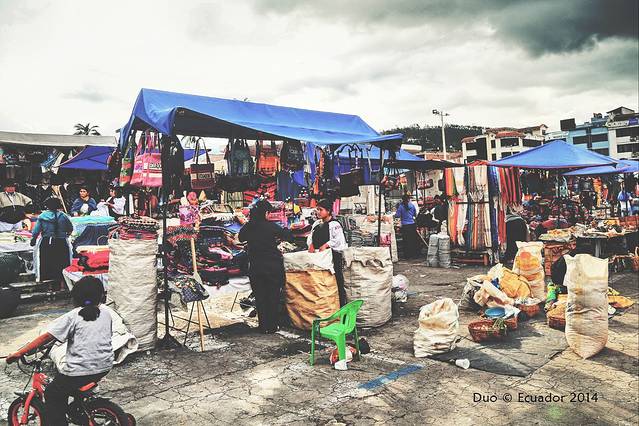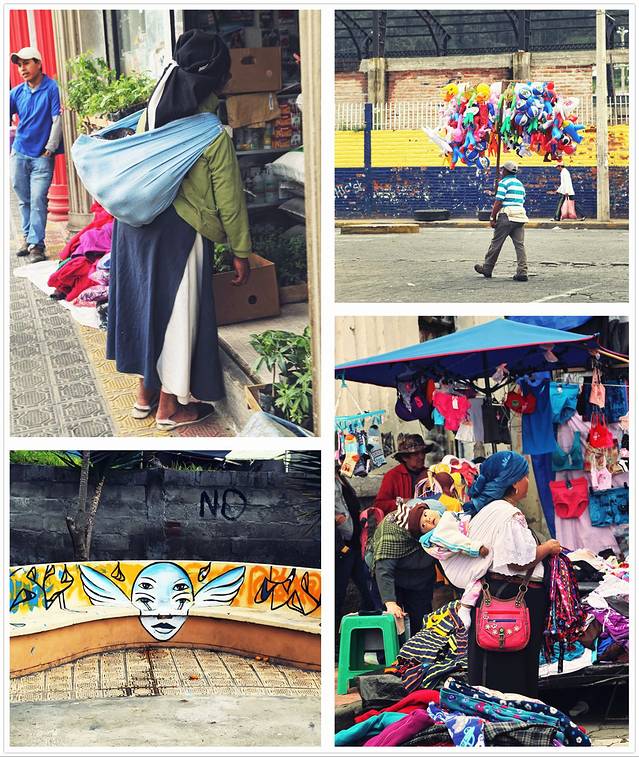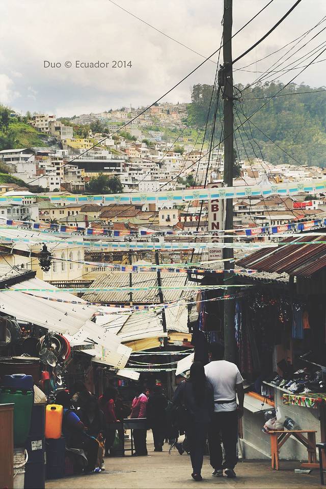 由古城中心打车到了位于城市北段的长途车站($10),在无数人围观下,用尽了智商和 body language 才挤上了开往Otavalo的巴士的最后一个位子,下午四点抵达镇中心大巴车站,先从车站打了车($1)去hostal放行李(其实步行也就十来分钟的路程,但何必让自己背着行李硬撑~),然后在旅馆老板的手绘地图标示下赶了个晚集。