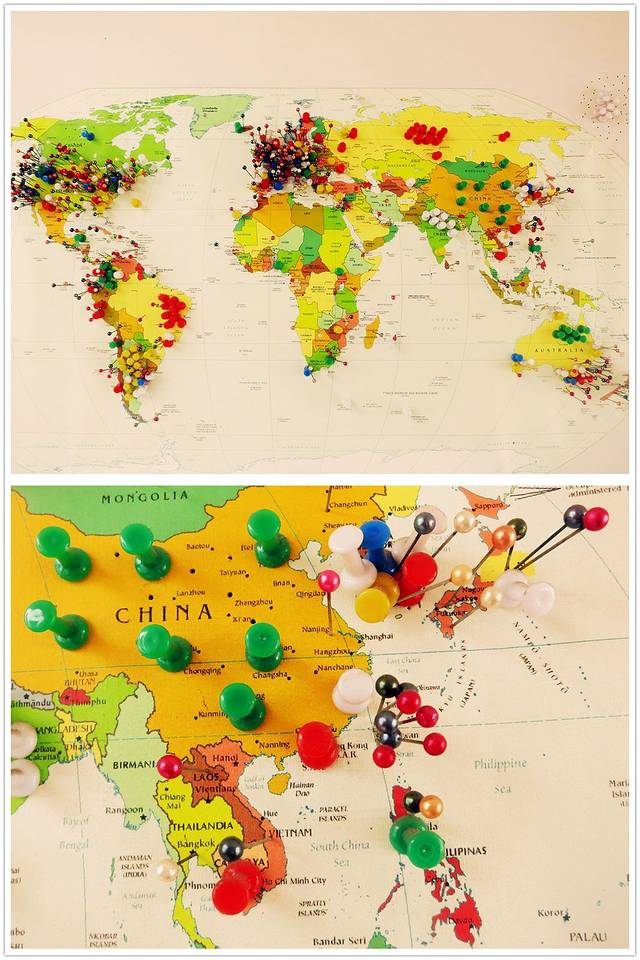 Hostel里供住客玩的 travel marking map