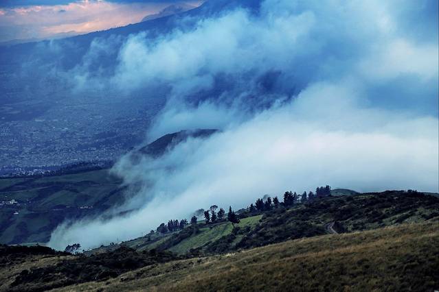 从4100米的缆车TeleferiQo终点俯瞰2800米的基多城,我只能说我已腿软。。。因为落日时光照减弱影响视野,但也因此,站在山顶的十分钟内,看到了云雾迅速聚集突陷混沌世界的奇景,下山时已不知自己身在何处。这就是高原气象。