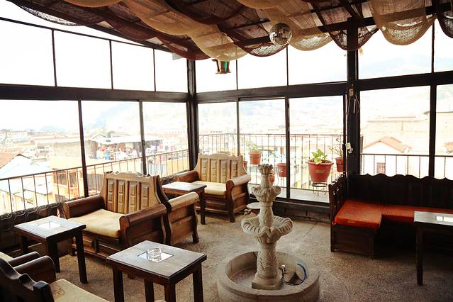 单人间$12/晚,早餐$2.5 (not included but 是吃一顿能顶一天运动量的份量),接机$35… 房间老旧,有点阴暗潮湿,窗户正对着楼梯间,理应很吵,但当时正值淡季,整个hostal只有我与一对智利夫妇住着,还是很安静的。这间家庭旅馆的亮点是顶楼露台Bar,能俯瞰小半个古城,一至夜晚,灯火便如星光璀璨,惊艳非常(后面有图)。