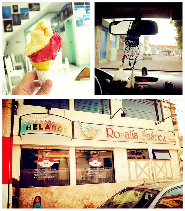 傍晚回到Ibarra,想着时间充足,不如附近逛逛,在LP查到一间当地出名的冰淇淋店,被誉为拥有“青春永驻”的甜筒冰淇淋 Heladeria Rosalia Suarez,创始人Rosalia女士在1897年因“十七岁的无聊”而发明了一款由热带水果果汁和蛋白制成的甜筒冰淇淋,并流传至今。我在火车站拿回寄存的背包后打车找到了这间店,消磨了近一小时时间后又打车去了巴士总站,准备回基多。