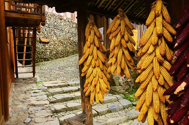 古老的木头,更让这个美丽的寨子增添一丝纯净的味道。