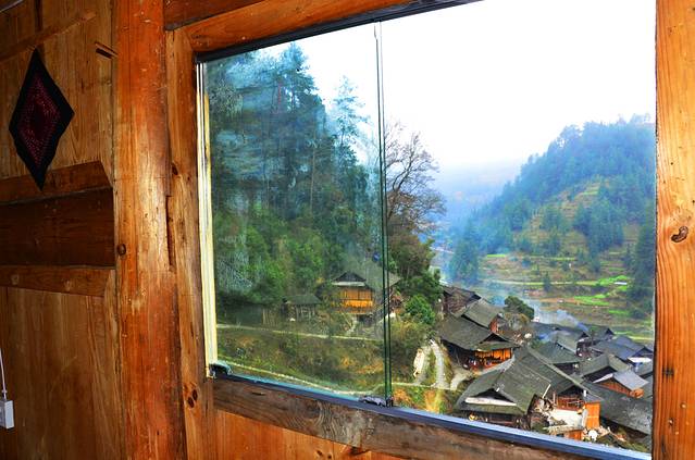 窗户外面就是郎德全景,当时我都乐得不得了。晚上吹来的山风,有点凉爽,不过很纯净!建议其他小伙伴,晚上和清晨有点冷。所以带件小外套还是挺管用的,不骗你,不信的话,那就多数感冒了。不得不提,wifi无线全覆盖,不错不错。