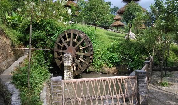 看看这古老水车,沿着石板路上去左右两旁的草垛亭,突显出了它古老的气息和追寻很多地方都消逝的古老记忆。