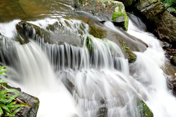 瀑布一个接着一个,四周都是瀑布流下来呈现出来的水雾氤氲,那瀑布在乱石中奔泻,因山形、地势、水量的不同,所倾泻而下的节奏也不同,感觉敲击出大自然的万千乐章,沐浴在这富含负离子、纯天然的空气中,让人心旷神怡。