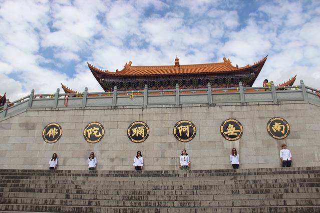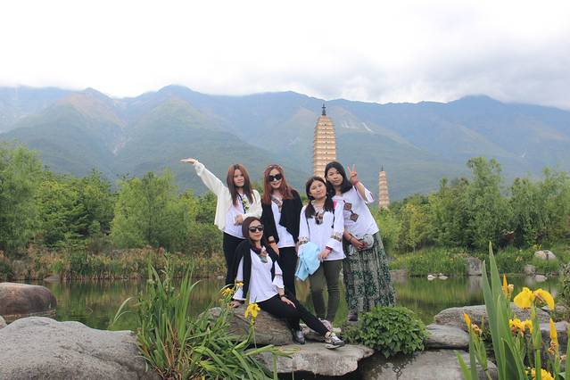 因为我们都是没有计划去旅行的习惯.崇圣寺是老师极力推荐的.说很壮观~早上在古城吃了早餐六个人包了台车50块就送我们到了崇圣寺门口.门票可以上网团购.都比较便宜~但都比不上学生证便宜.带上学生证去一趟旅游真的省不少!我当时心在淌血因为我没有带😭😭😭