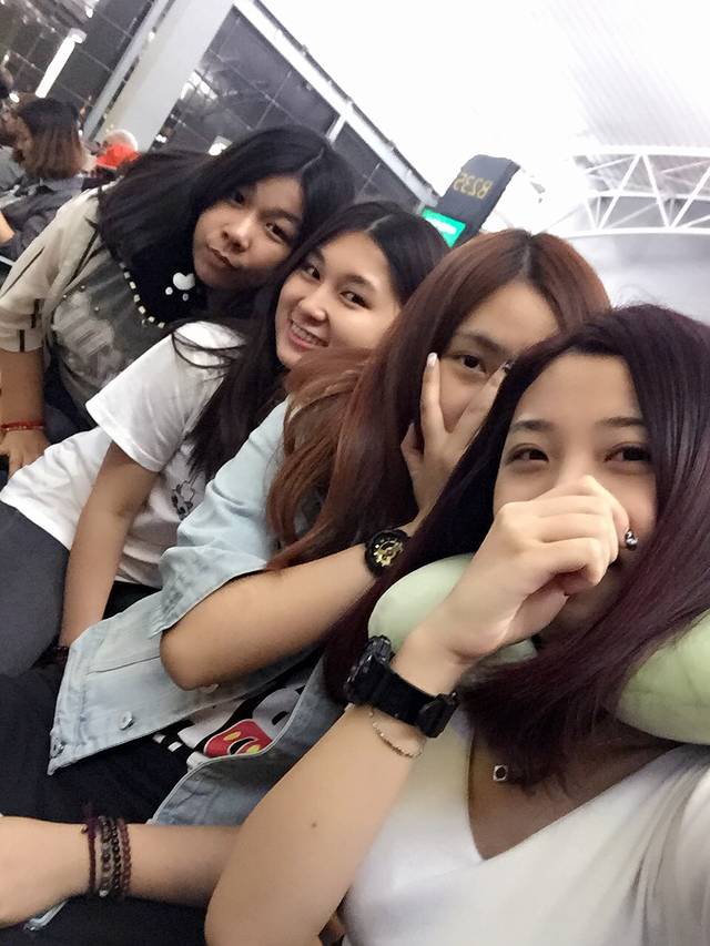 每次出去都是坐夜班的飞机✈️.感觉划算一些!四个人一起去到哪里都是自拍!