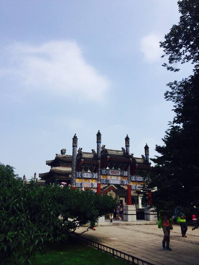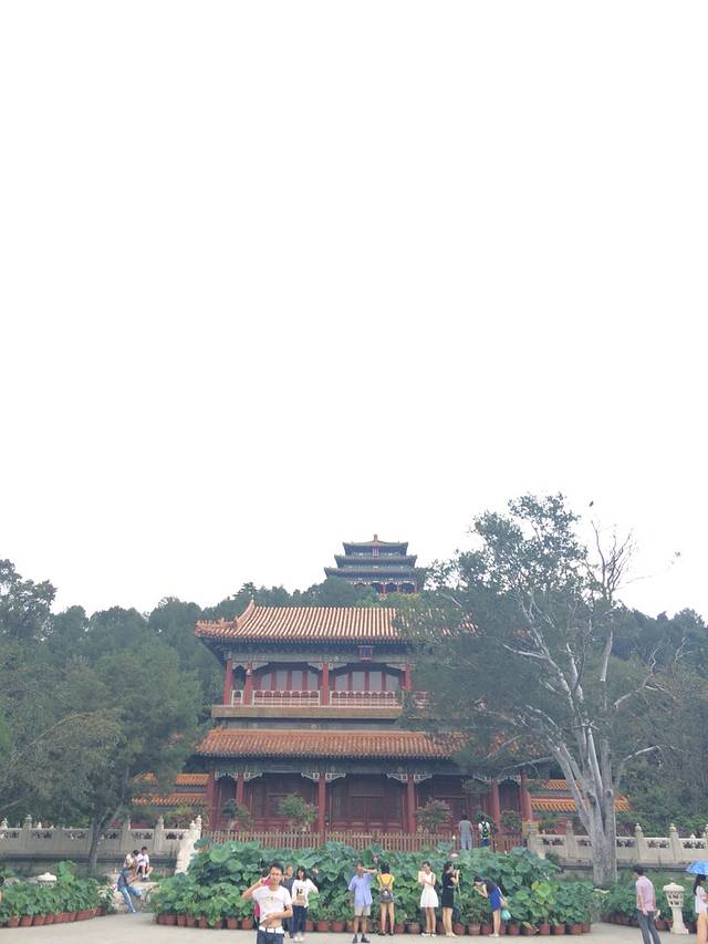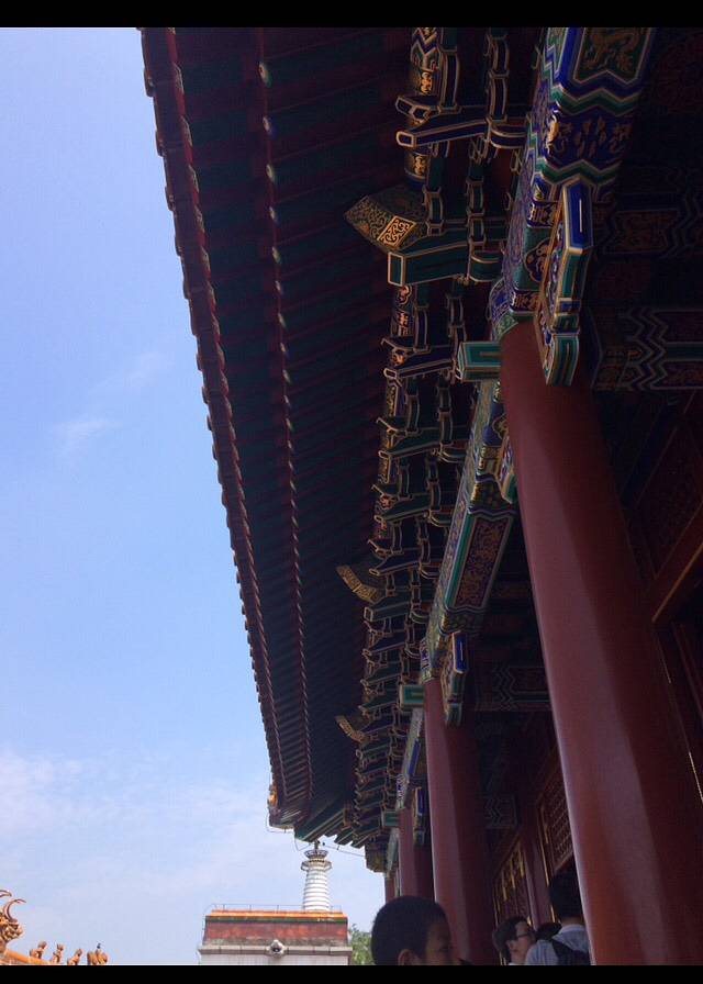 之后开始走这条路说是全中国最长的长廊。游客拥壤,或坐在那里休息,难容得下人行走。在廊外行走,同样能感受到它的辉煌。上图是排云门,进门便是排云殿,因为这是联票内容,我们只在外边远观取照后继续前走。
