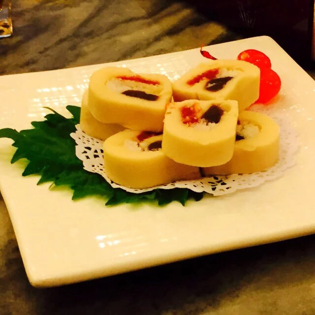 类似于豌豆黄的糕点,入口即化,清新爽口,开胃佳物。