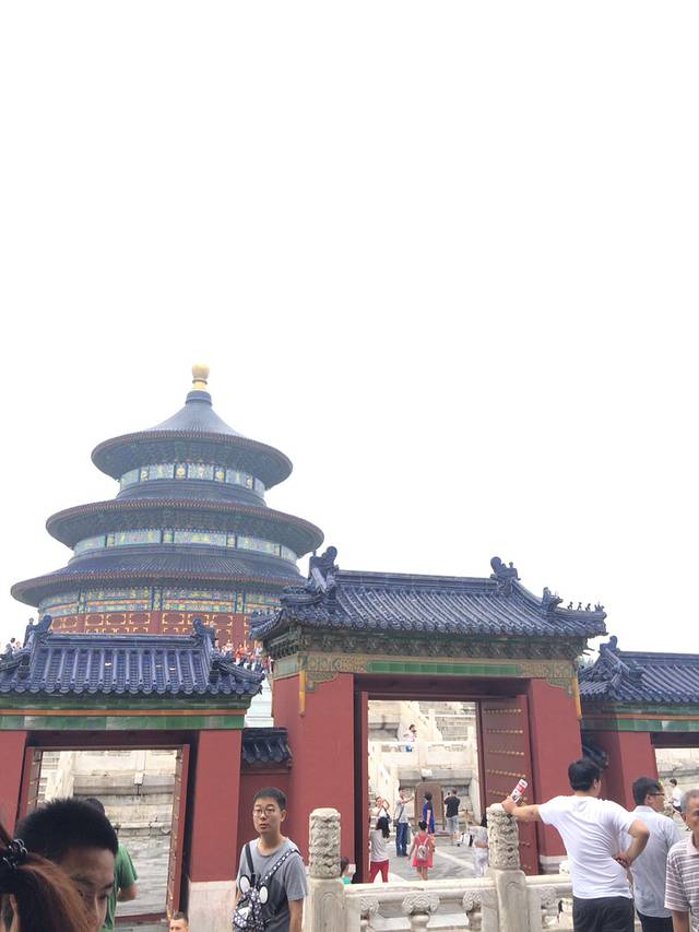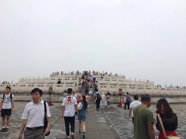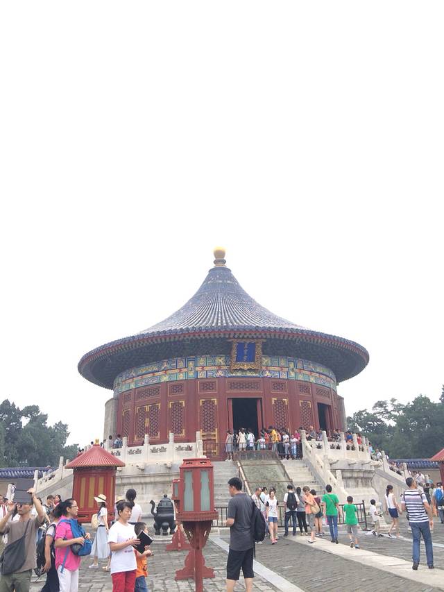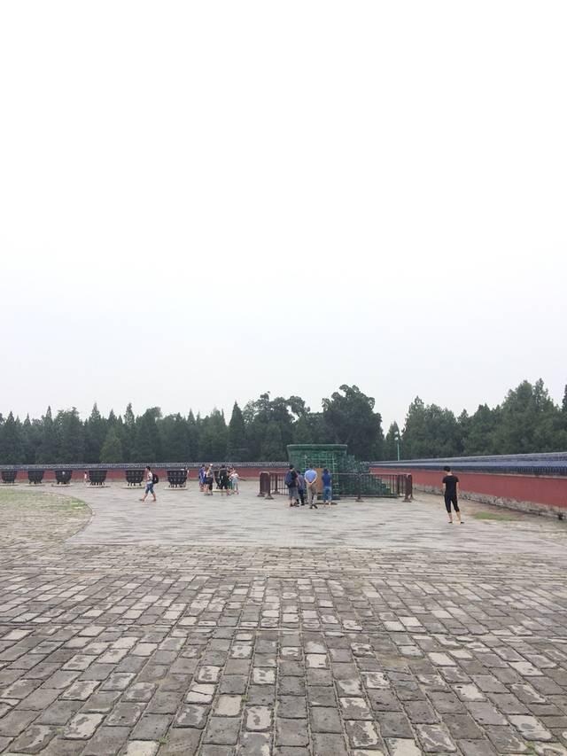 来到了圆丘。在我看来其实就是祈年殿景点少了祈年殿只剩下外围一圈圈白玉围栏。不过圆丘上的天心石还是蛮有意思的,据说站在上面说话自己会觉得声音洪亮、震耳欲聋,然而别人听来却差别不大。大概是用来让皇帝自我感觉良好吧。不过现在成为游客拍照专用石,竟然有一家人站在上面拍全家照。然后我们又当了一回跟风狗,争抢站上那块石头爽爽仅此而已哈哈。