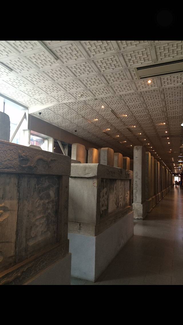 这是乾隆石经,一个展览馆,全都是雕刻驻在白色大石上的各种古文经诵。
