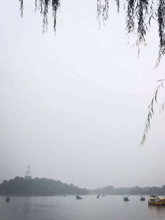 走进景区,果真第一天选对了地方,没有太多游客涌入的痕迹,是一个很安静的地方,散步的情侣,锻炼的老人,三五成群休闲的好友,飘杂着小雨增添几分舒爽。然后映入眼帘就是垂柳…海…作为一个沿海土著居民,对于这样一个海,想到的只是没有见过大海的内陆地当然是很容易满足于此。 有些小雾小雨对面的景色不是那么清晰可见。