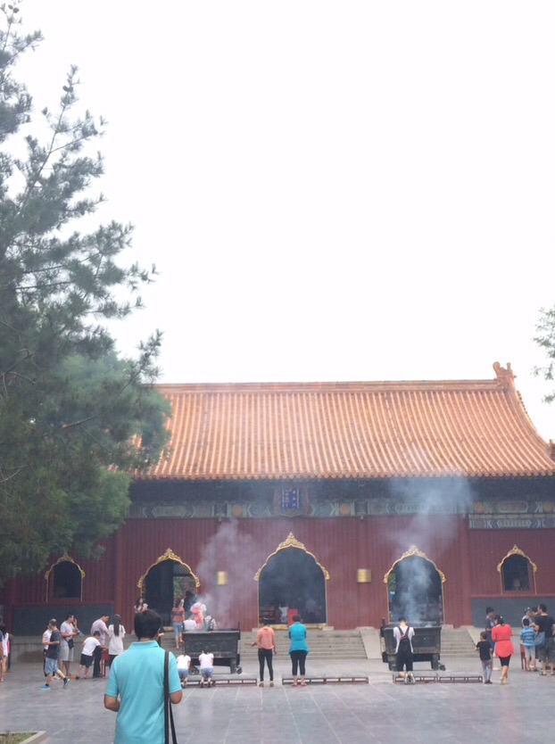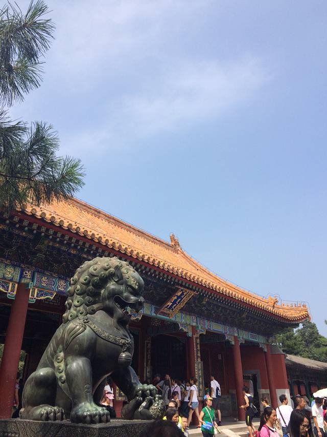 雍和宫为雍正的原府邸,后开辟为藏传佛教寺庙,大多数都是慕名前来进香祈愿。学生票价12元。两旁槐荫夹道,给人一种清爽的感觉。