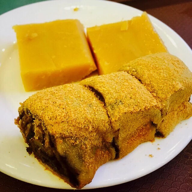 之后帝都小伙伴来啦,她点了一个豌豆黄(上)和驴打滚。豌豆黄不错吃,算是在帝都目前吃到的最爽口的东西,驴打滚跟我们这里麻薯味道有些相似,味道也还行。