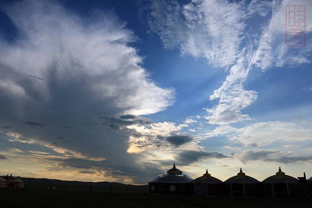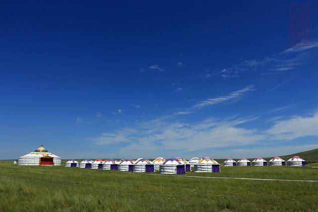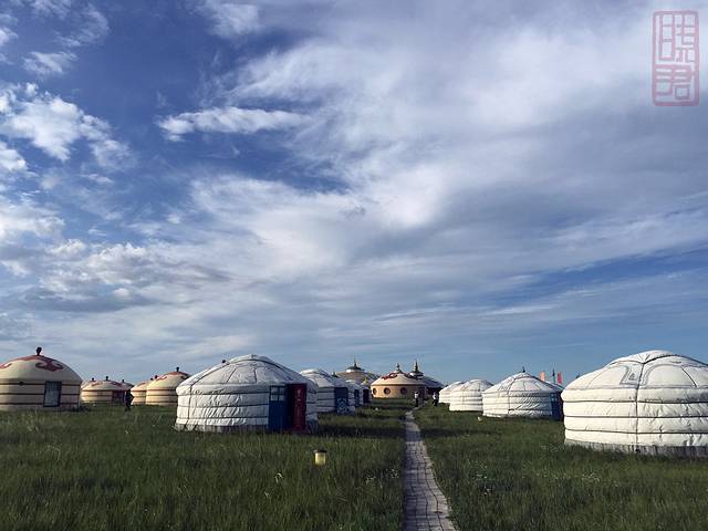 过后我们前往蒙古汗城,因为还有小型的那达慕,这一天的行程不是太赶,感觉挺舒适。蒙古汗城以蒙古民族文化观光、休闲娱乐和草原观光为主。它以元朝成吉思汗时代的蒙古部落风格为准,整体上由以金顶大帐为中心的各种蒙古包群体组成。来到此地,我们看摔跤、赛马,在大草原上狂奔,入住蒙古包,还有烤全羊,以及篝火晚会。而于我来说最开心的是可以看到大草原的日出与日落,在蒙古包里还是豪华标间,都自带卫生间的。超赞。