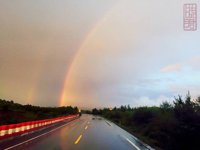虽然到达石林门口却因为暴雨无法进入景区,但是在路上遇到双彩虹也是很幸福的事。