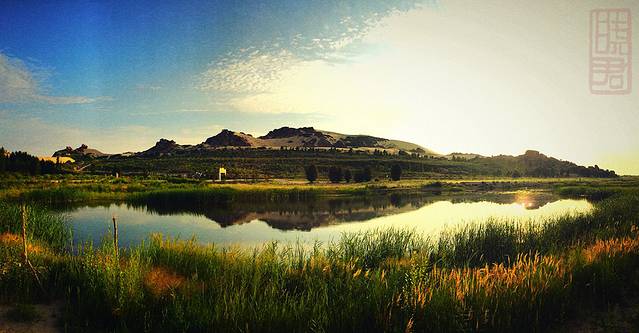 整个旅途中我最期待的就是今天,以为狼图腾拍摄地。在影院看《狼图腾》时,我暗暗想什么时候我一定要去一趟这个大草原。如今梦想成真,其实这些天看的大草原真的够美的了。乌拉盖草原位于内蒙古锡林郭勒盟东北部,乌拉盖草原是世界上保存最完好的天然草原,我们在冯绍峰带着小狼崽去的湿地边停了下来。山上有个野狼谷,里面确实有那么几头狼。