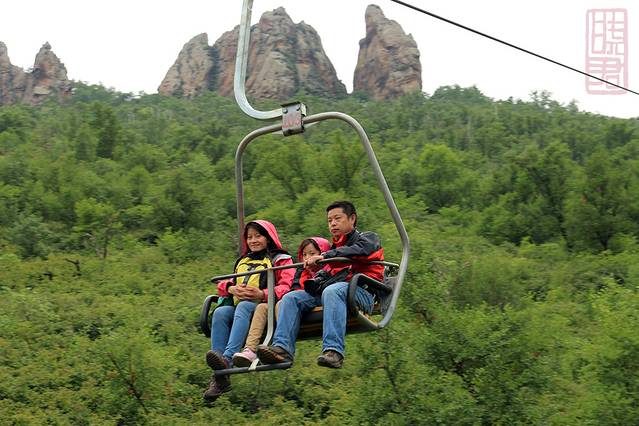 参观完博物馆,我们来到大青山。大青山景区位于大兴安岭东南边缘,是克什克腾世界地质公园重要园区,花岗岩形成的山体岩石经第四纪冰川运动,形成千姿百态的地质奇观。整座大青山峰峦叠嶂、群峰突起,连绵不绝,犬牙交错,直刺云天,巍峨壮观,就像一道巨大的天然屏障,傲然耸立在群山之间。大青山山体颜色多呈黛色,于是取名为大青山。景区门票120,索道30。