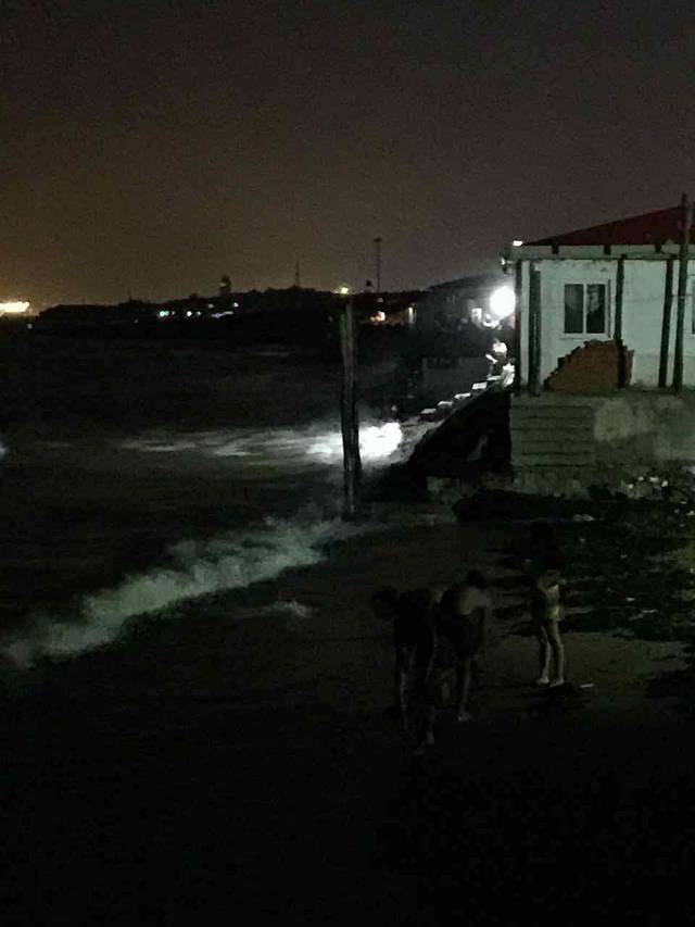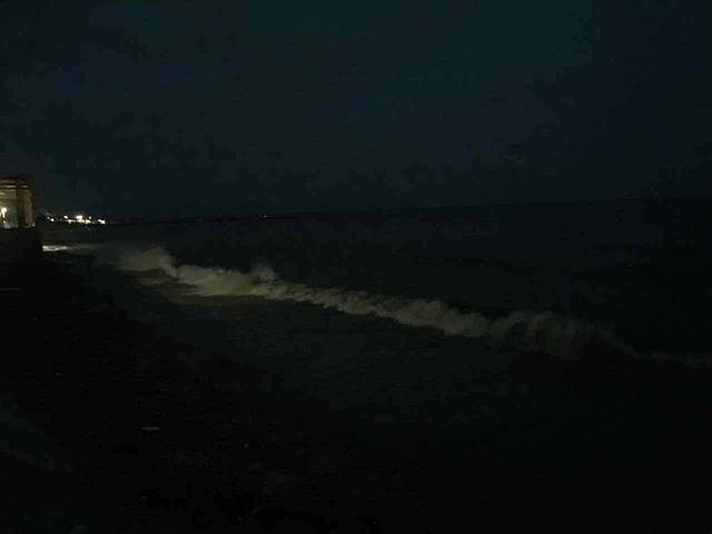 夜晚的海浪,海浪拍击岸边声巨大。。。但是很爽
