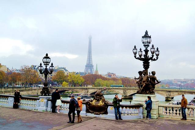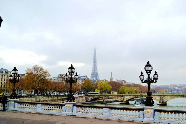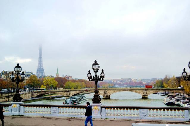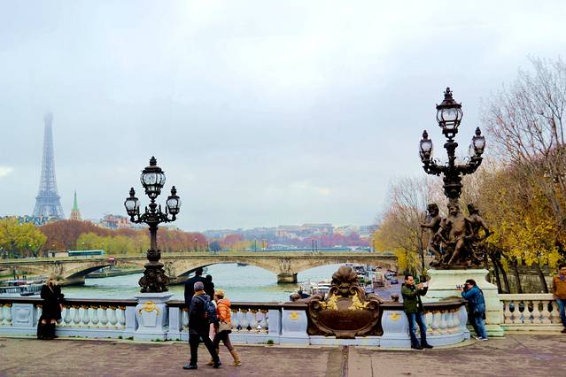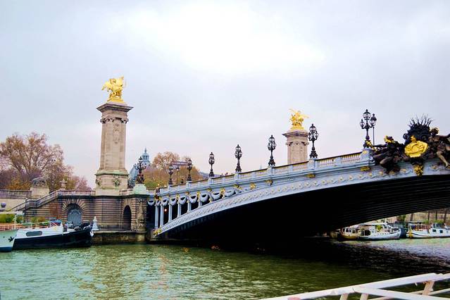 站在亚历山大三世桥上面看看塞纳河。