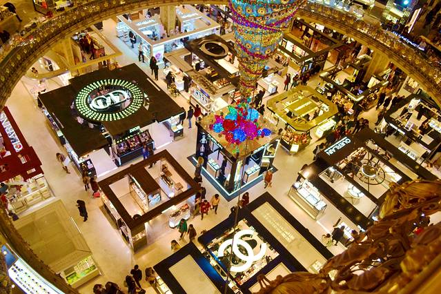 巴黎春天百货 (Printemps) 原是世界第三大奢侈品和零售业巨头巴黎春天集团 (Pinault Printemps-Redoute) 旗下高档连锁百货公司。创立于1865年的春天百货,一百多年以来,一直以一种勇于创新的冒险性格,作为企业精神。譬如,它是巴黎第一家率先采用电力照明的百货公司,而它那个以三千一百八十五块玻璃组合而成的圆形屋顶,除了是20世纪20年代「新艺术」的代表作之一,如今更被法国政府列为文化历史遗产。