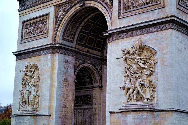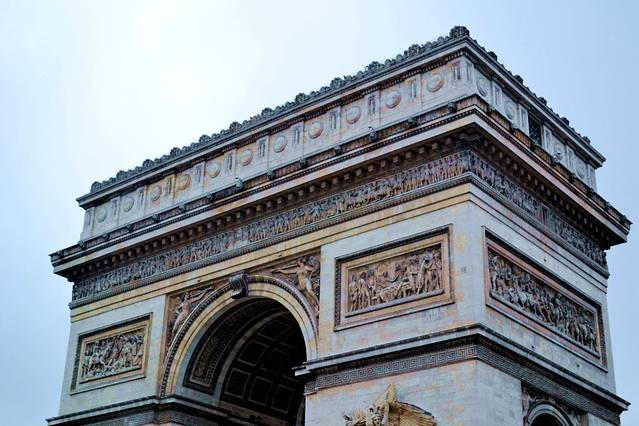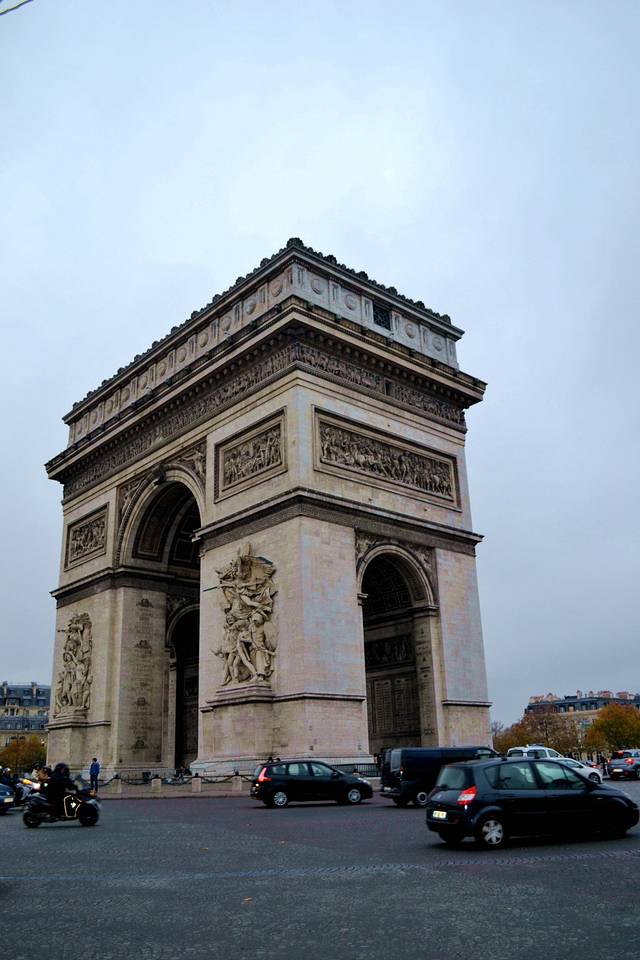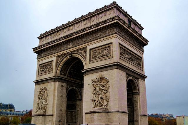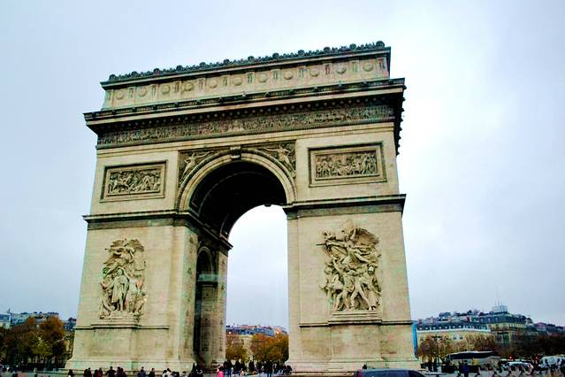 今天我们要去凯旋门,戴高乐广场,香榭丽舍大道。巴黎其实不止一座凯旋门,但当人们说起巴黎凯旋门的时候,一定是在说戴高乐广场中心的那一座。它是为了纪念拿破仑在1806年在奥斯特尔里茨战役中获胜而建的,它因此成为了巴黎四大代表建筑之一(埃菲尔铁塔 、凯旋门、卢浮宫 和巴黎圣母院 ),也是目前香榭丽舍大街上最大的一座圆拱门。