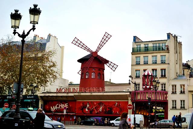 我之前查阅了一下有关资料,弄清了红磨坊来历。19世纪这里(蒙马特街)是官方不认可的艺术家的聚集地,在其广场有了这批另类艺术家表演集会的“红磨坊酒店”,这个酒店房顶安装了长长的风车叶片,它象征自然美的旋律。艺术家们最真切、最逼真的表演,为巴黎广大市民所接受。从1889年开始,这里就成了歌舞表演厅,二十世纪初,来这里表演的艺人们幽默、精湛、大众化的表演得到了官方认可。 红磨坊现在成了世界舞蹈艺术类出类拔萃的俊男美女汇集表演的圣地,成了梦幻似巴黎夜生活的象征,也成了世界游客到巴黎一睹为快的必到之处。