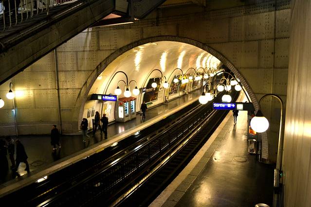 巴黎地铁(法语 :Métro de Paris)是法国 巴黎 的地下轨道交通系统,于1900年 起运行至今。目前巴黎地铁总长度220公里 ,年客流量达15.06亿(2010年 ),居世界第九位。有14条主线和2条支线,合计303个车站(387个站厅)和62个交汇站。巴黎地铁现由巴黎大众运输公司(RATP)负责营运。该公司亦同时营运巴黎区域快线RER的一部分以及巴黎路面电车 中的1号线、2号线、3号线、3号线b线以及巴黎及其近郊的公交车路网。