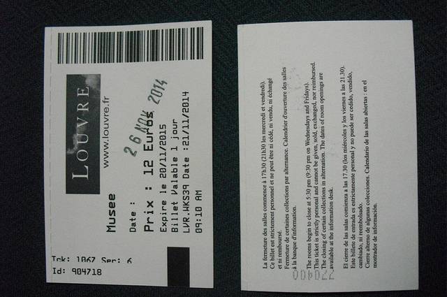 到了卢浮宫,每人发放一张门票。12欧元的团体票,像名片一样。
