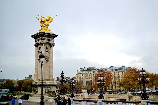 大桥左边是协和广场、大皇宫、小皇宫,右边是荣军院。整个大桥给人的感觉就是巧夺天工,如果说凡尔赛宫是将巴洛克风格在宫殿建筑上发挥到了极致,那亚历山大三世桥则是将其奢华的技艺风格在桥梁上应用到了极致。在一个繁华都市的河流之上,神奇地营造出了一座跨河大桥的磅礴气势。