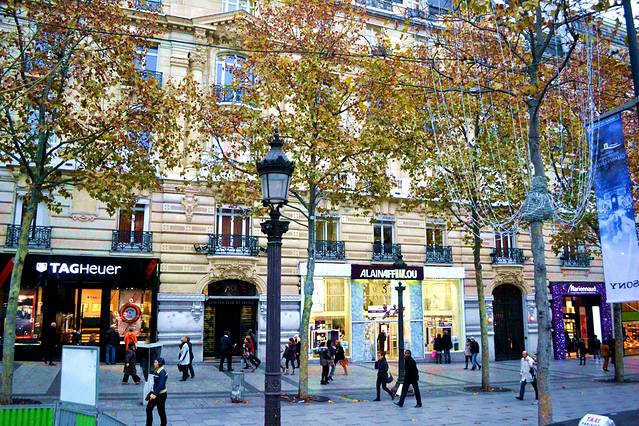 漫步香榭丽舍大道可以从凯旋门处逛起,连接凯旋门的这段便是汇集了路易威登大厦、卡地亚专卖店等时尚品牌,也有如奔驰、菲亚特、雪铁龙等高级轿车展览中心,以及一些高品位的餐厅。在这条街上白天游人如织,沿街的橱窗琳琅满目,既是你不入店购物,光看橱窗就可以目不暇接了。或者找一家路边的露天咖啡店,喝着下午茶看远处的凯旋门和街道上往来人群。而夜色中的香榭丽舍大街则更加的璀璨迷人 。