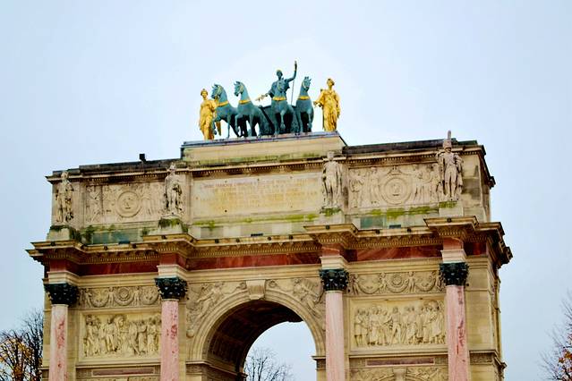 下面是小凯旋门又名卡鲁索凯旋门,是法国巴黎的一座凯旋门,位于卢浮宫范围内的卡鲁索广场,小凯旋门建于1806年到1808年间,是为了庆祝拿破仑在1805年的一系列战争而建造。作为杜伊勒里公园的入口,小凯旋门目前变成了卡鲁索广场的主要标志。