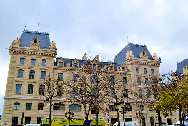 这是市政厅。是一座文艺复兴时期风格的建筑。原市政厅在1871年巴黎公社起义时被付之一炬,现在的建筑是1882年建成的,大楼有许多楼台式结构,平顶的金字塔形屋顶。大厦外墙上有136尊法国历代名人雕像。 市政厅广场是法国重要的政治活动场所,从中世纪、大革命时代直到现代,很多重要的历史事件都发生在这个广场上。
