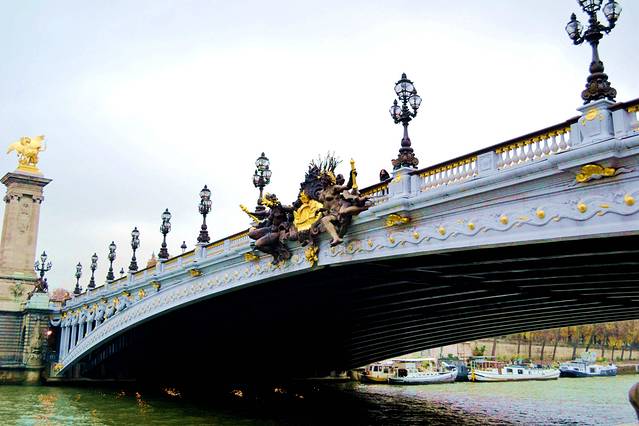 在协和广场过去一点就是亚历山大三世桥。是法国巴黎跨越塞纳河的一座拱桥,将两岸的香榭丽舍大街与荣军院广场连接起来。不论你是从桥上走过,还是乘游船从桥下经过,都可以领略到它的魅力。