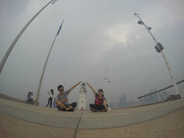 住在鲁迅公园对面不去走走真的太逊了。于是又在3g男错误的带领之下,我们再往回走找车站的时候我看到这么美丽的海滩还是绝对背着行李到这里拍照留恋。是个不错休息的地方。