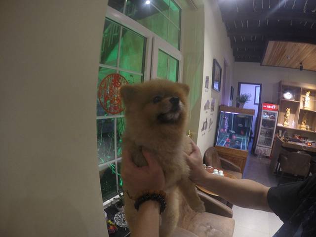 这里还有一只呆萌的小狗由于腿太短被困在小圆桌上,可爱的程度让本身怕狗的我都萌生想养她的冲动。
