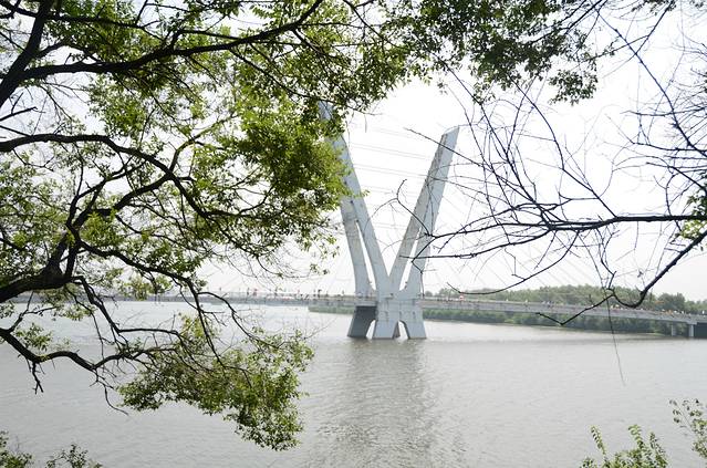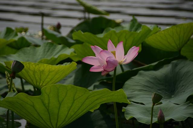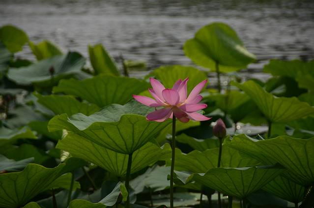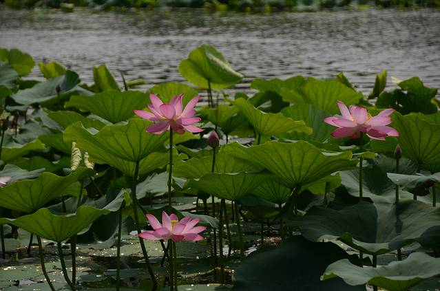 我们姐妹四人在白塔堡出发,坐188到世纪大厦地铁站乘地铁站,与发小在东中街站集合,然后在小津桥什字街换乘385直达鸟岛。385是有人售票的公交车,车程近一个小时吧,但是路况不是很好,而且周末出行的比较多,特别堵,385的司机师傅也是个急性子的,车都开到人行道上了也丝毫不减速,话说好危险的!鸟岛那边也一样堵车,于是师傅决定绕道,去鸟岛的乘客包括我们就都在鸟岛东下车了。一下车就看到好大一片荷花池,好漂亮的说!