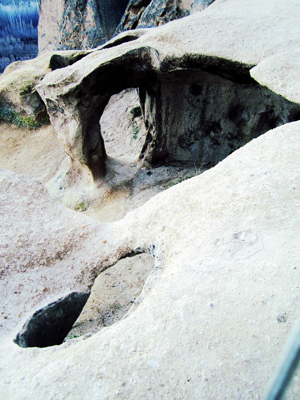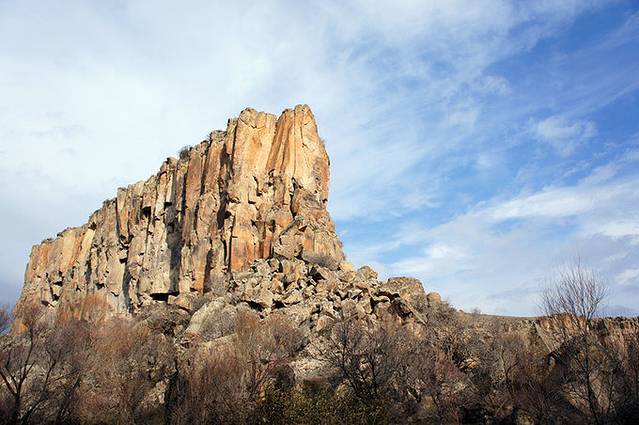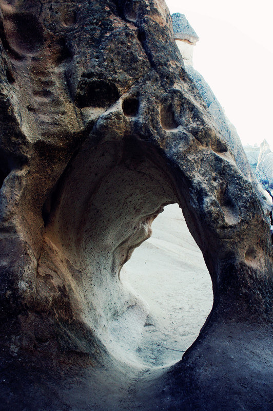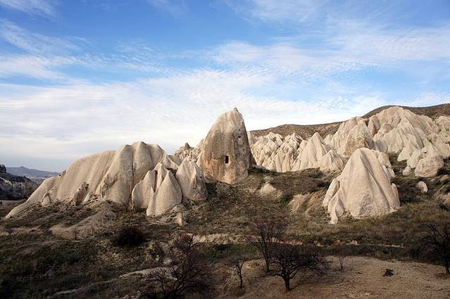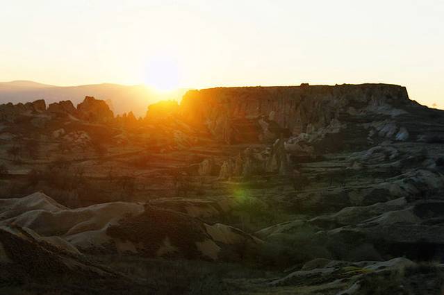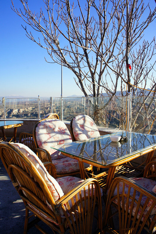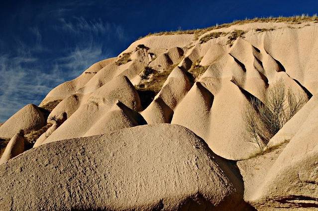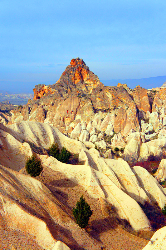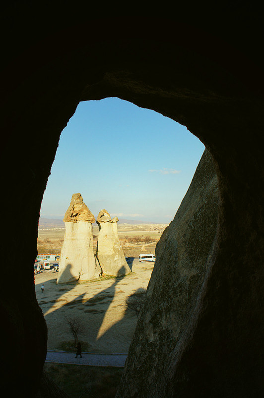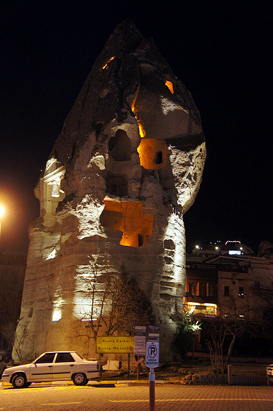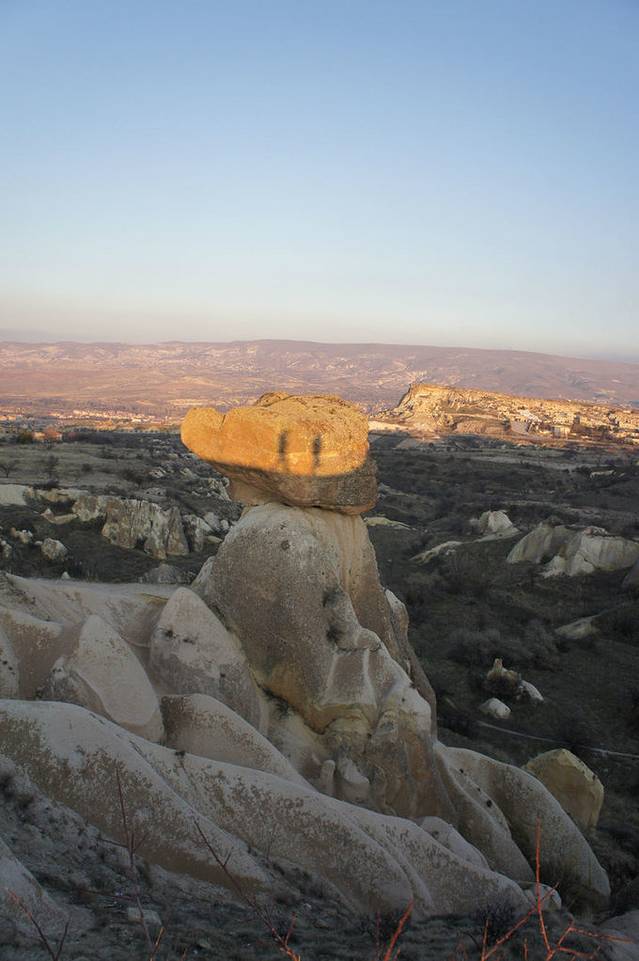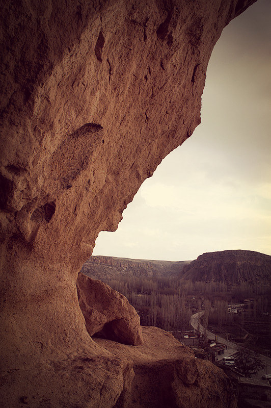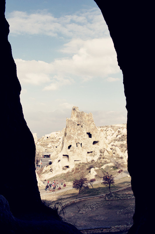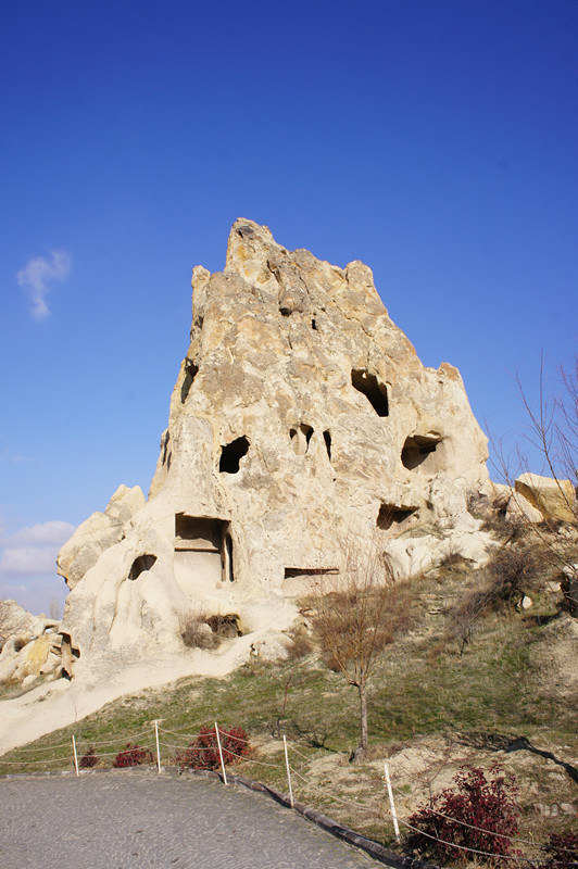 where you have a nice view of the castle and the fantastic cone-shaped rock formations surrounding it. The magnificent landscape of Cappadocia has been formed from solidified lava streams, ash and tuff stone from volcanic eruptions millions of years ago. The landscape you can see now is the result of thousands of years of continual erosion, which has shaped the tuff deposits into the strangest pyramids and cones.