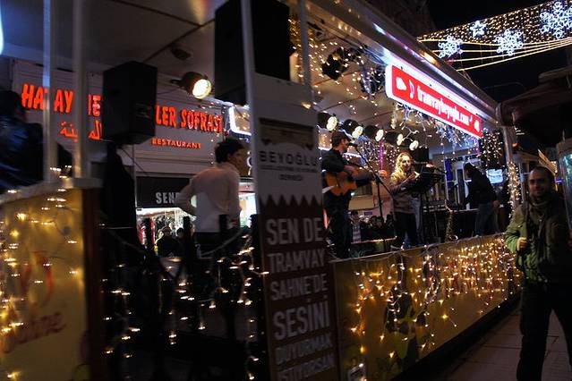 塔克西姆广场的小火车,有live band在表演。我只是想说年轻人的生活都是一样happy的。