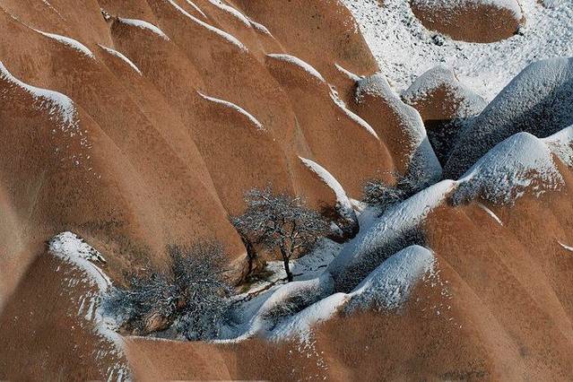 那雪白的石灰华(travertines)地貌看似棉花般松软纯白。