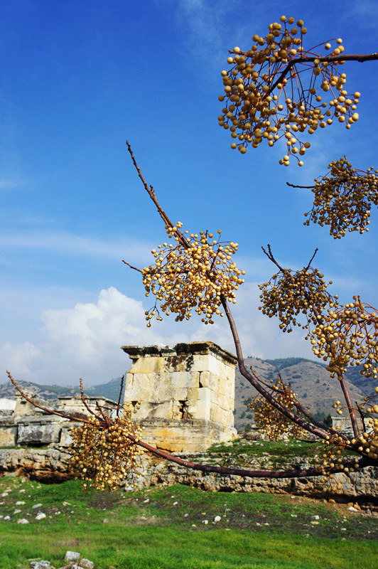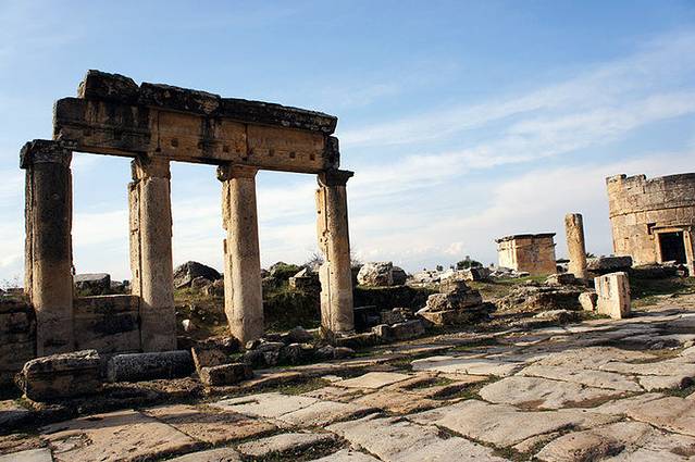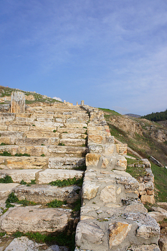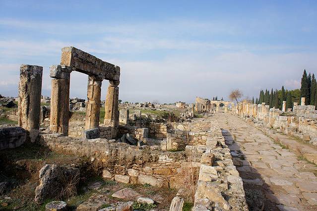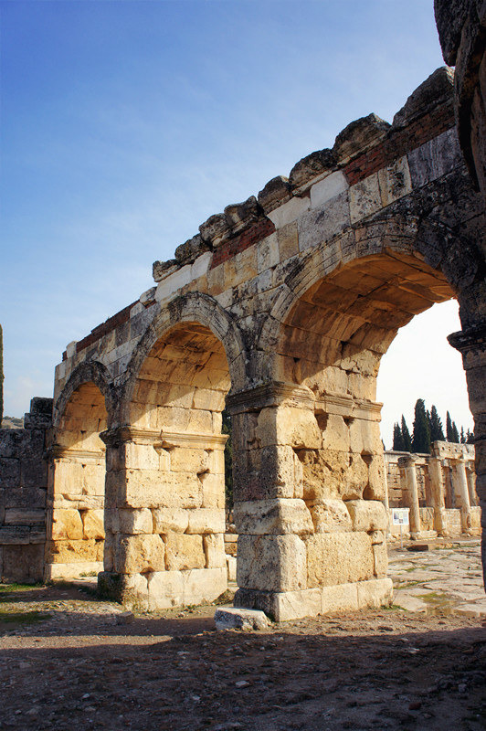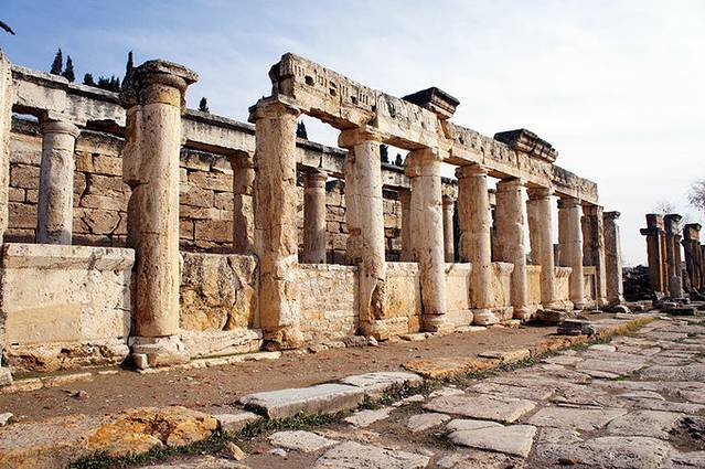而在棉花堡的山顶坐落着著名的希拉波利斯(Hierapolis)古城,古城内可以看见古罗马时期的神庙和浴场。
