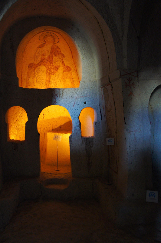 One of the most unexpected surprises in Cappadocia is the wonderful rock-cut monastery in Selime, at the end of Ihlara valley, 28 km from Aksarai. Selime was home to Hittite, Assyrian, Persian, Roman, Byzantine, Danişment, Seljuk and Ottoman civilizations. One of the most important aspects of Selime fortress-monastery was that many leading clergymen were educated there. The military headquarters of the region was also located there. While the monastery is dated to 8th and 9th centuries, the frescoes in the structure date back to late 10th and early 11th centuries. The depictions include Ascension, Annunciation and Mother Mary.