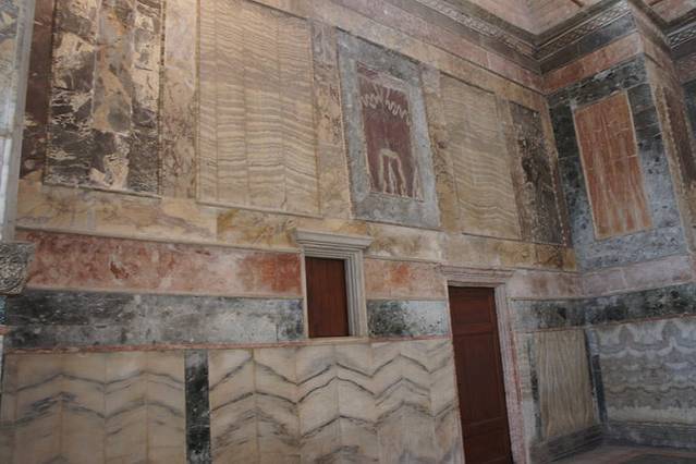到达第二层和第三层的一组楼梯修入了墙体,为建筑增加了支撑,也有类似的壁龛存放书籍。天花板是平坦的,有可能中心是一个方形天窗,以提供更多的光线。